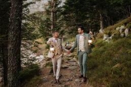 En tenue de mariés, au bord du lac, entre sentiers forestiers, roches brutes et sapins, ils ont revécu l’émotion de leur union dans un décor profondément apaisant. Une atmosphère suspendue, presque hors du temps.