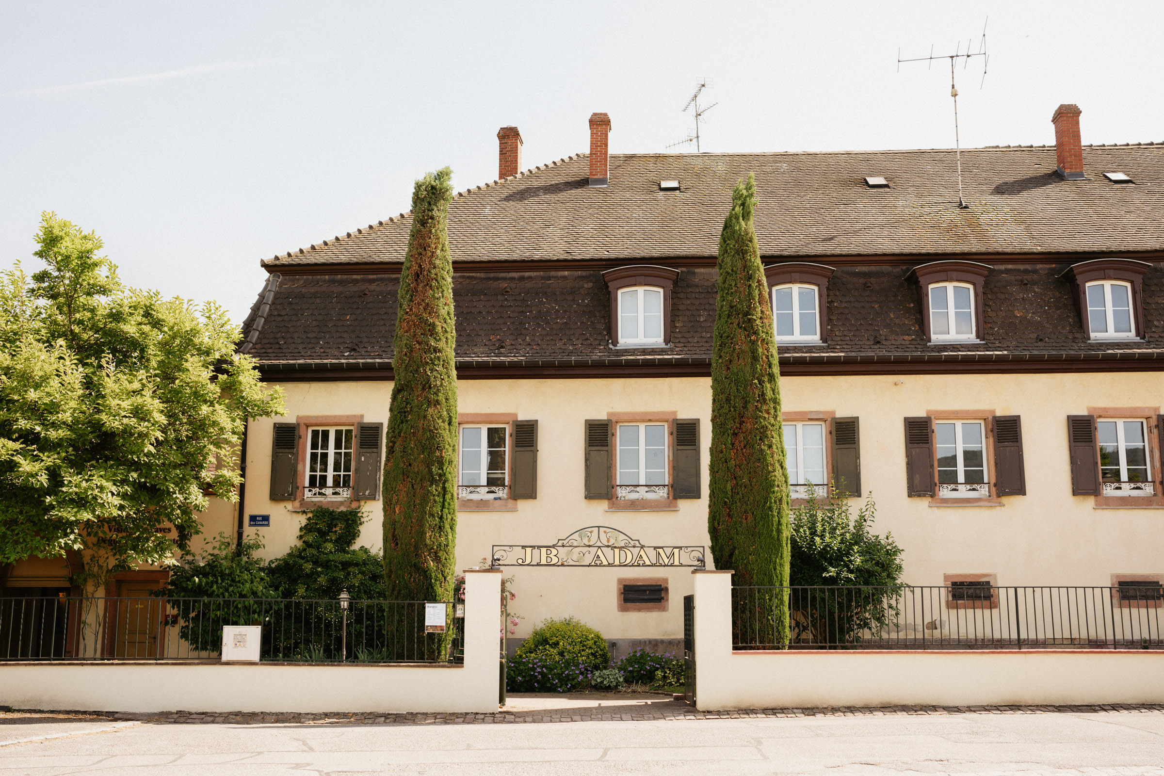 Au détour de la route des vins d’Alsace, à Ammerschwihr, le Domaine Jean-Baptiste Adam s’étend entre les collines et les rangées de vignes au vert tendre. Un lieu plein d’histoire, où la tradition viticole familiale se transmet depuis près de quatre siècles, et où chaque saison raconte un nouveau chapitre du terroir alsacien.