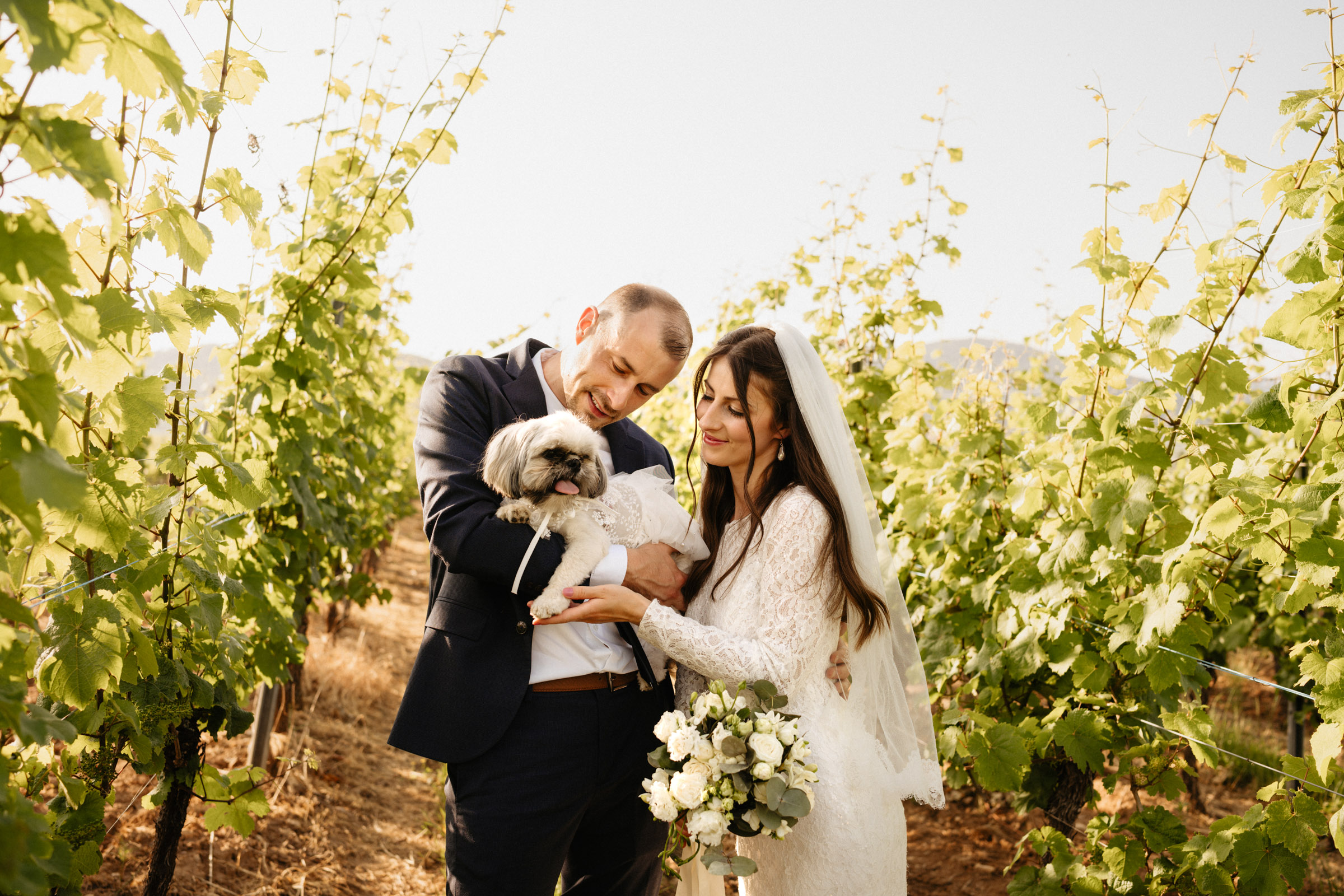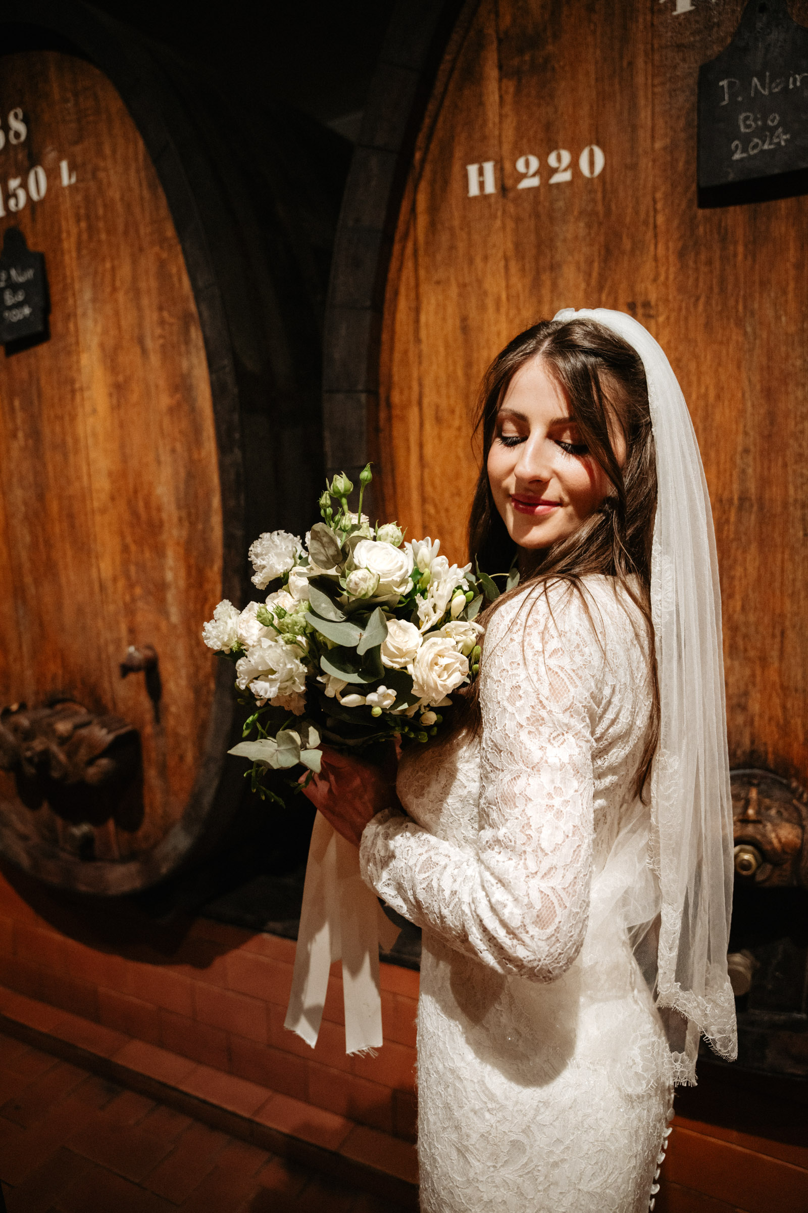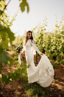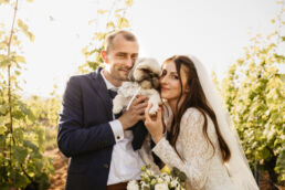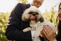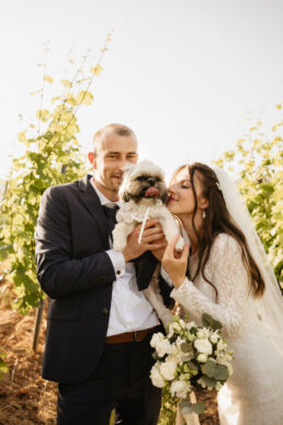 C’est dans ce décor authentique que Dylan et Valeria ont choisi de célébrer leur amour, entourés de leurs proches et de leur petit chien Mirabelle. Un mariage intimiste, sincère, pensé comme une expérience à vivre autour de la dégustation de vin avec leurs invités.