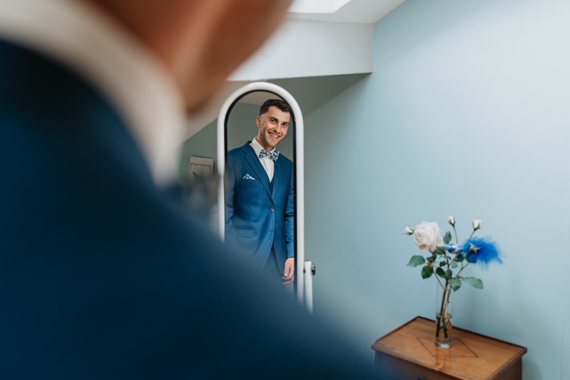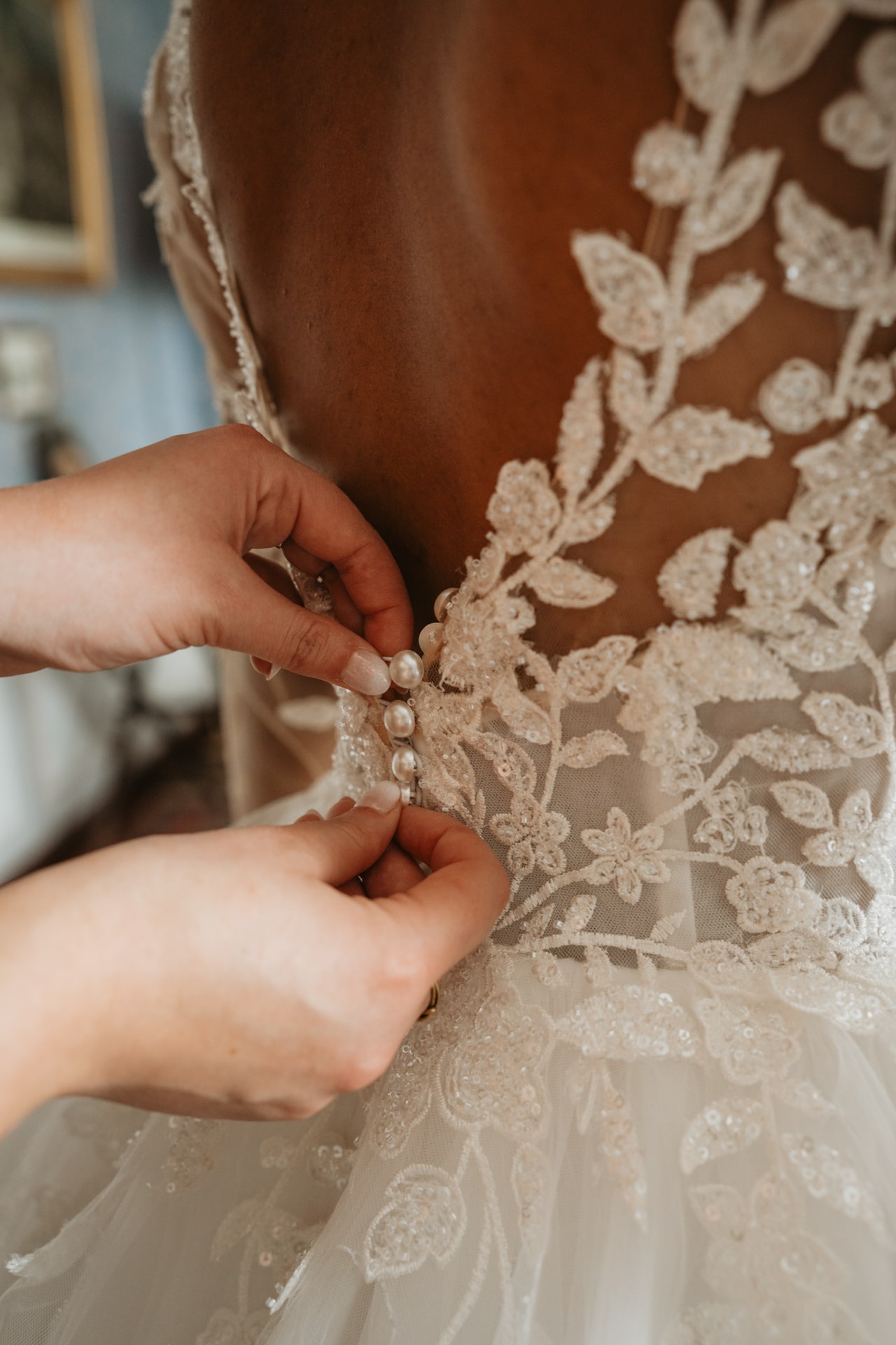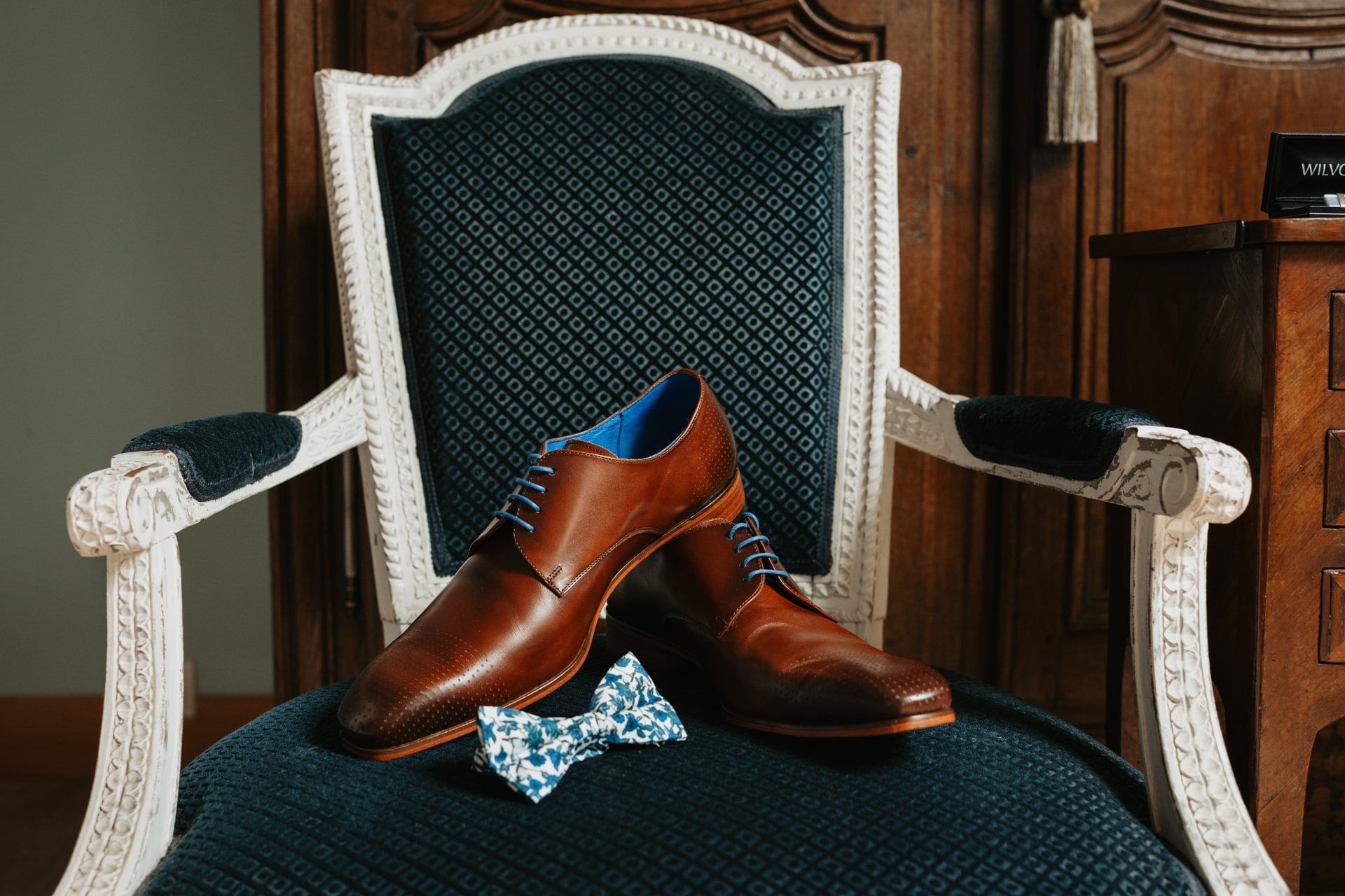 La journée commence doucement, avec la magie des préparatifs dans les chambres du château, le soleil traverse les vieilles fenêtres. Meagan et Jean-Baptiste sont entourés de leur proche, et l’excitation monte progressivement pendant qu’ils se préparent chacun de leur côté. C’est le moment de prendre en photo tous les petits détails qui reflètent l’essence du mariage : papeterie, bouquet, alliances, photos du lieu, portraits à la volée… La première découverte entre Megan et son papa avant qu’elle ne se marie est bouleversante.