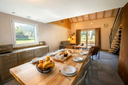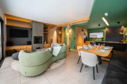 Située à Gérardmer, la Ferme Émeraude est une ancienne ferme vosgienne entièrement rénovée dans un esprit haut de gamme. Pensée pour accueillir familles nombreuses et groupes, elle offre de grands espaces de vie chaleureux. Son espace bien-être avec piscine intérieure, spa, sauna et hammam invite à ralentir, se retrouver et profiter pleinement du cadre naturel des Vosges.