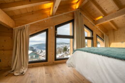 Au cœur des Vosges, le Chalet Perle Noire est un refuge élégant niché dans le domaine Comeau, à Gérardmer. Exposé plein sud, il offre une vue imprenable sur le lac et les forêts environnantes. Ses volumes répartis sur trois niveaux, mêlant vieux bois, pierre et acier, créent une atmosphère à la fois contemporaine et chaleureuse. Au pied des pistes, c’est un lieu idéal pour se ressourcer entre nature et confort.