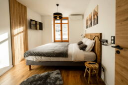 En plein cœur de Gérardmer, à quelques minutes à pied du lac, le Petit Hermès est un appartement rénové, lumineux et confortable. Il dispose de deux chambres avec salles d’eau privatives, d’une cuisine équipée et de tout le confort moderne. Idéal pour un séjour sans voiture, où tout se fait à pied entre commerces, restaurants et activités dans les Vosges.